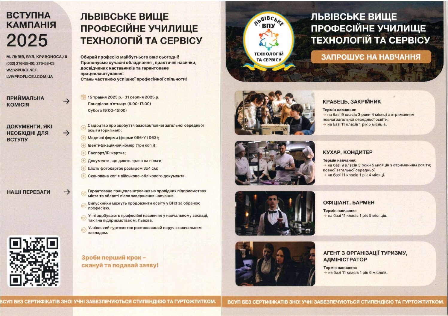 Правила прийому до Львівського вищого професійного училища технологій та сервісу на 2025 рік